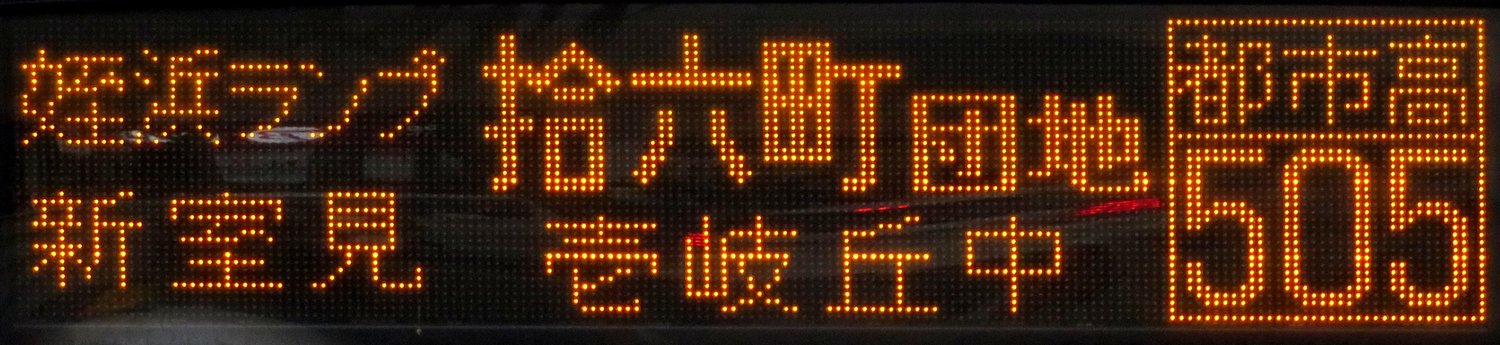| 現存 |  | 行先: 505 都市高 壱岐丘中学校 経由地: 姪浜ランプ,新室見,拾六町団地 表示区間: 警固一丁目→那の津口(ボートレース福岡入口) 撮影日: 2019-05-11 公開日: 2019-12-03 撮影者: nnr_1510 備考: